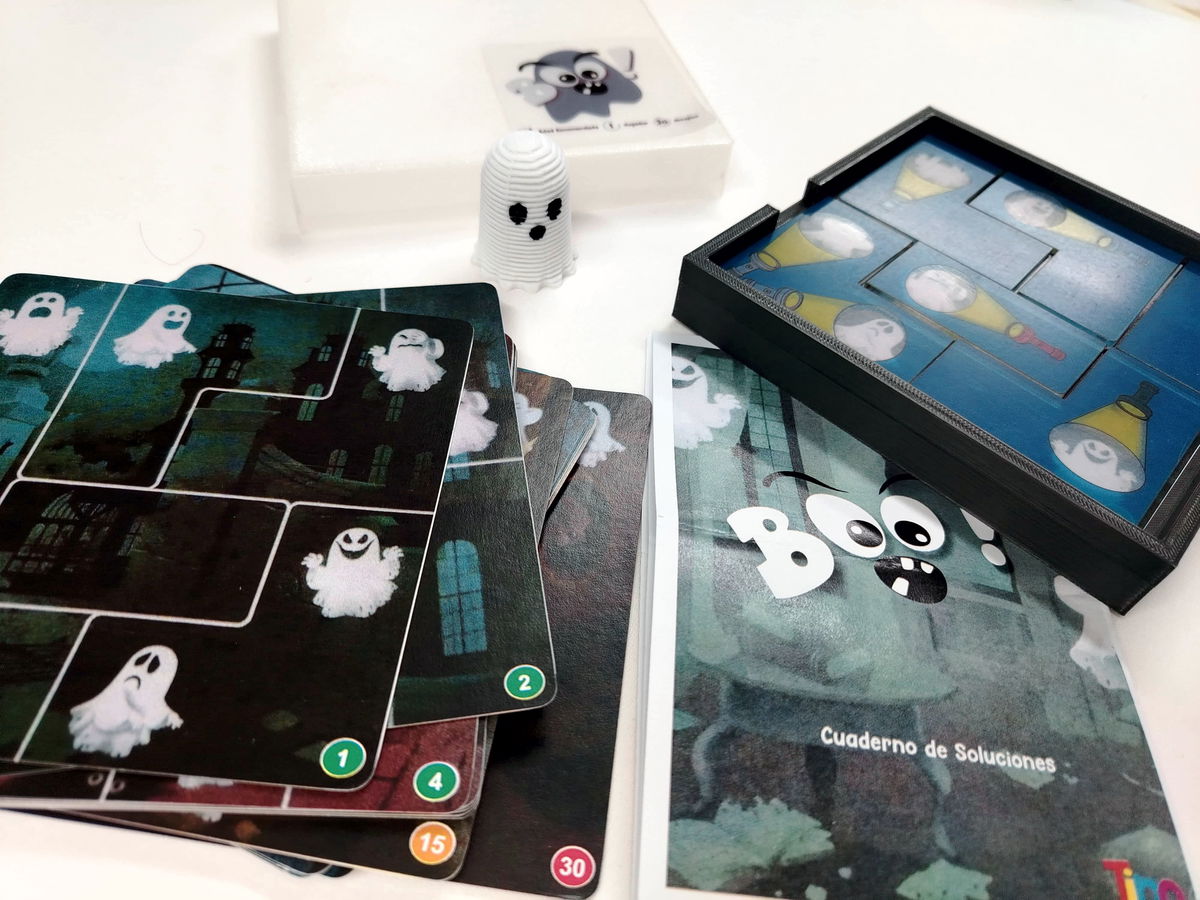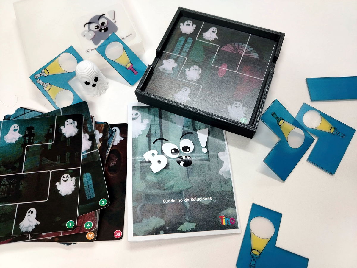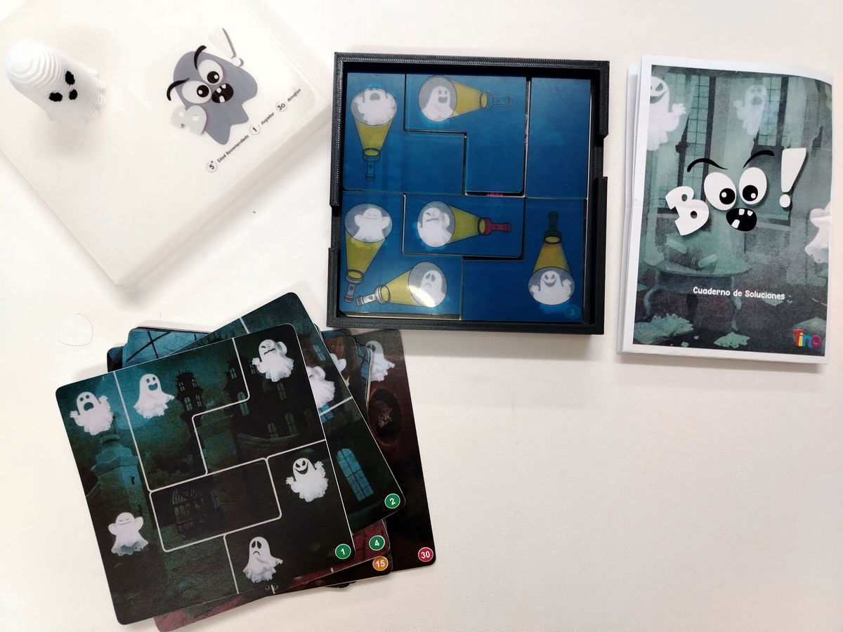 Boo es un emocionante juego educativo que desafía a los niños a capturar fantasmas utilizando su ingenio y lógica. Recomendado a partir de los 6 años, este juego presenta tres niveles de dificultad: fácil, intermedio y difícil. Los jugadores deben resolver los desafíos colocando correctamente las piezas del rompecabezas para hacer que cada fantasma se vuelva visible bajo la luz de la linterna.