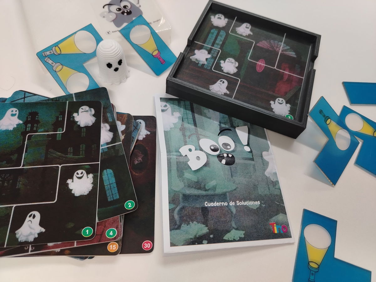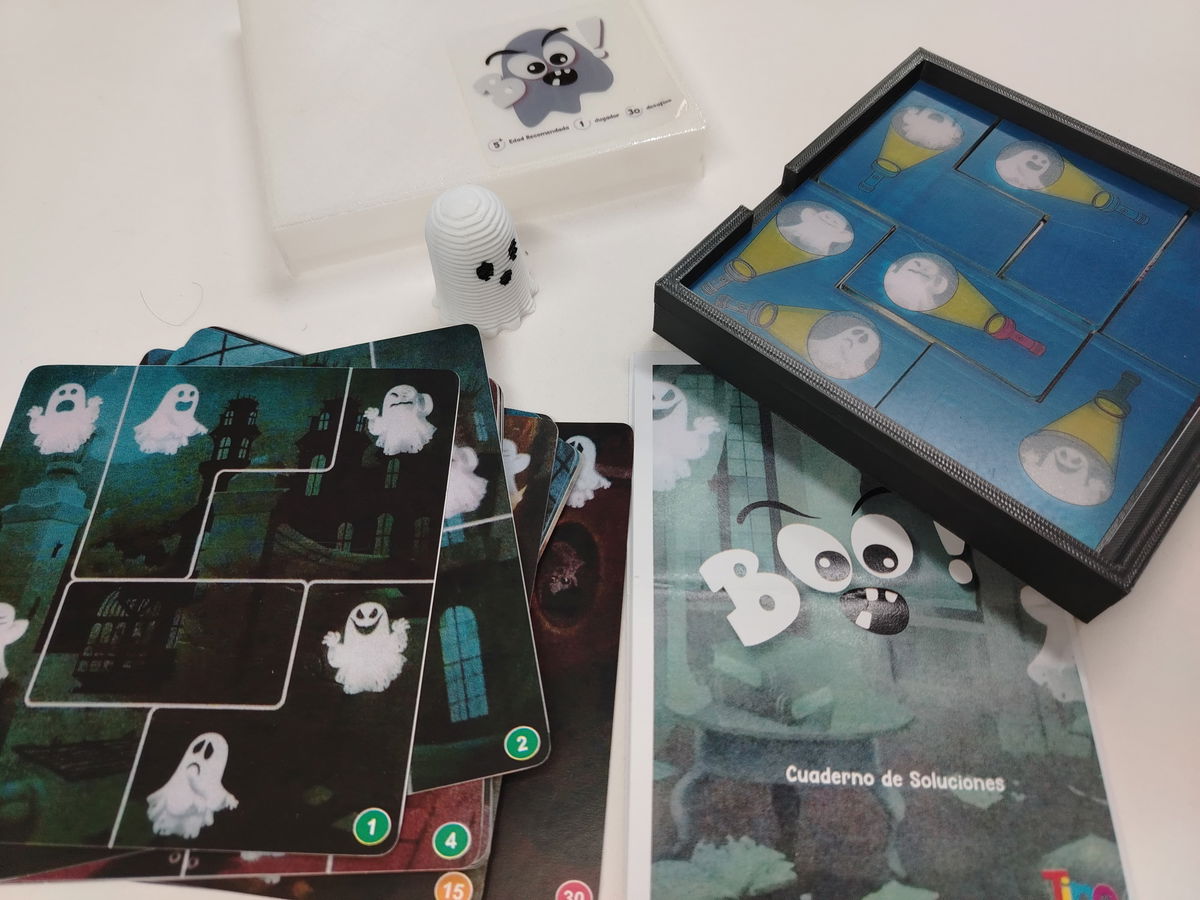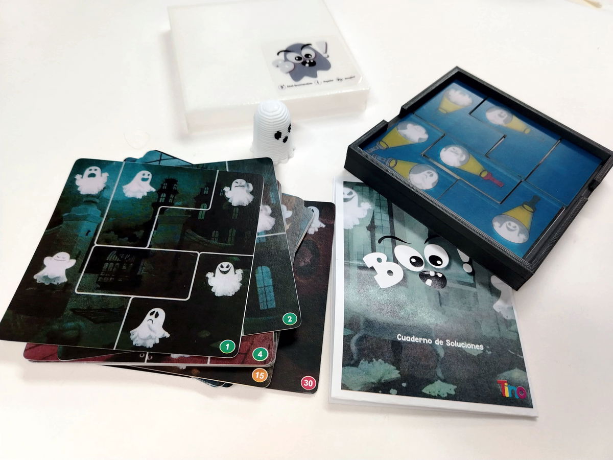 Boo es un emocionante juego educativo que desafía a los niños a capturar fantasmas utilizando su ingenio y lógica. Recomendado a partir de los 6 años, este juego presenta tres niveles de dificultad: fácil, intermedio y difícil. Los jugadores deben resolver los desafíos colocando correctamente las piezas del rompecabezas para hacer que cada fantasma se vuelva visible bajo la luz de la linterna.