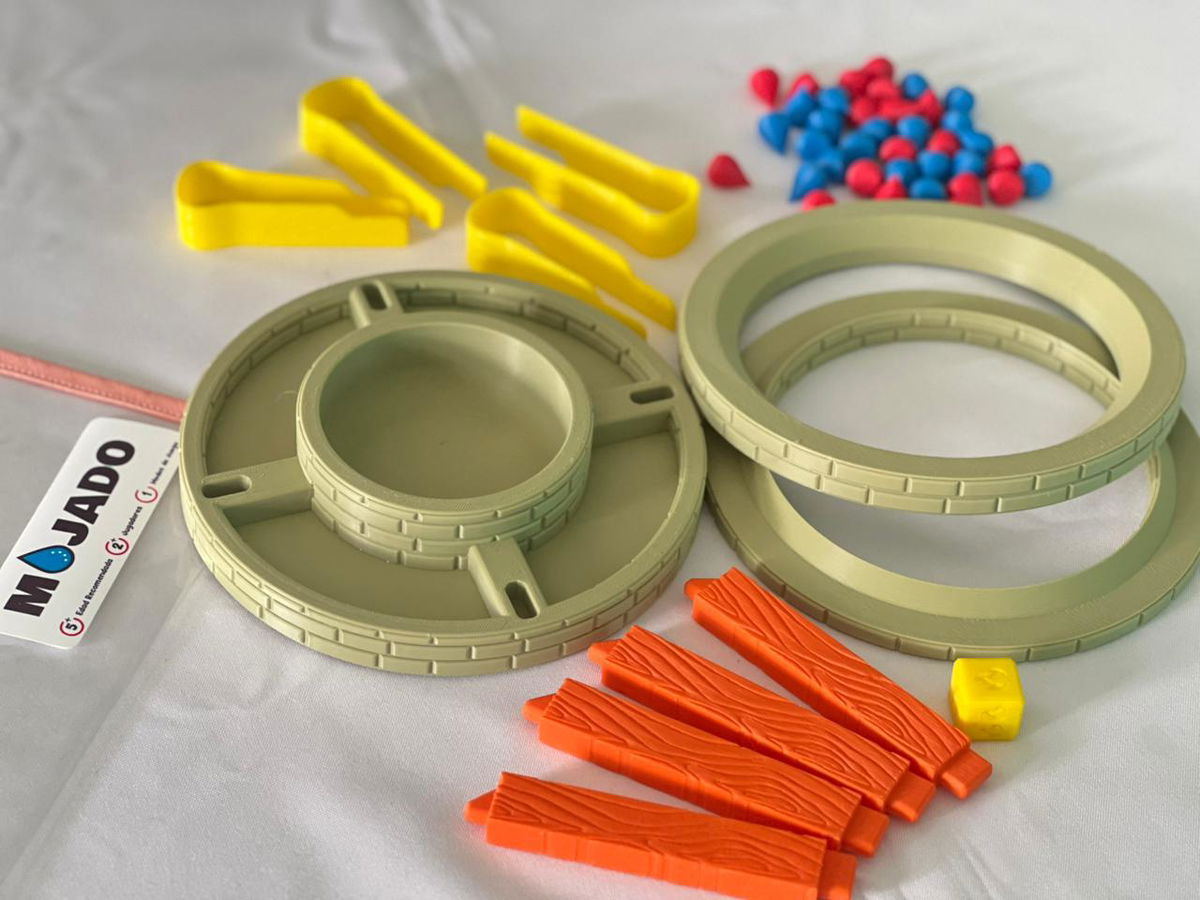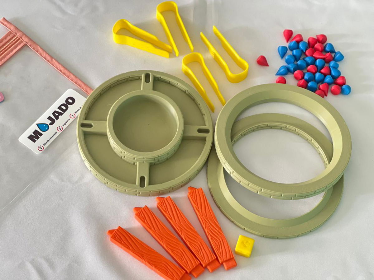 MOJADO es un juego de habilidad, precisión y nervios a flor de piel. Cada jugador deberá colocar piezas rojas (fuego) o azules (agua) según lo que indique el dado.