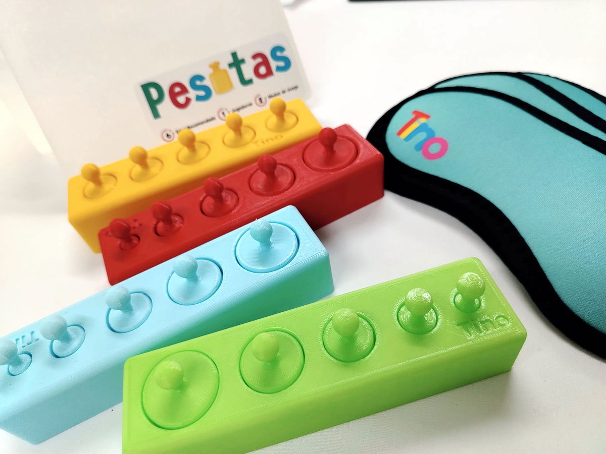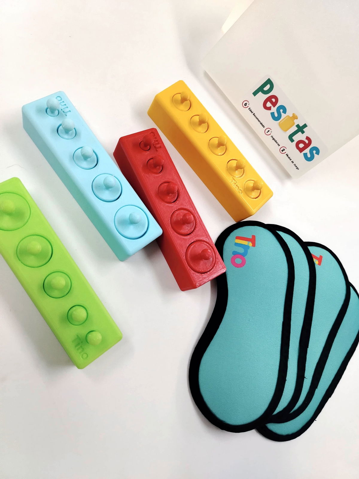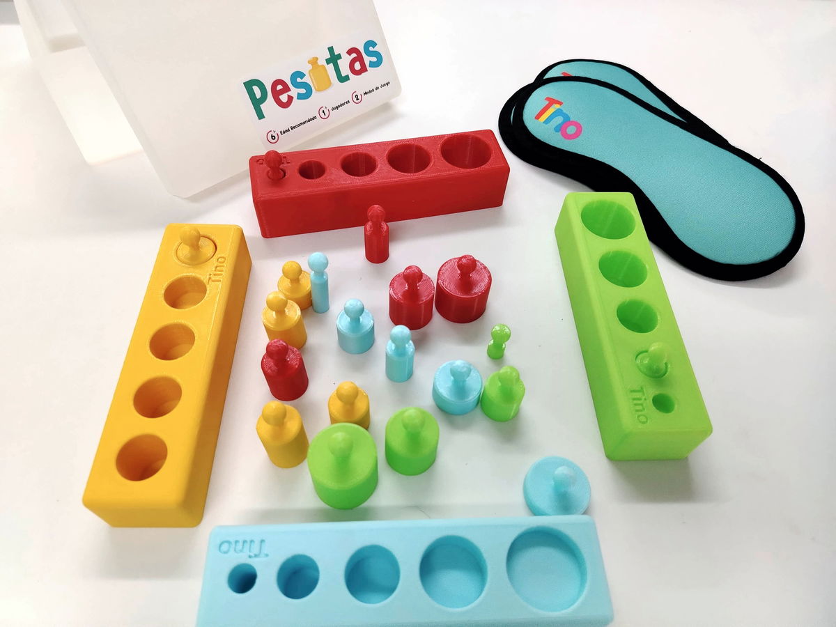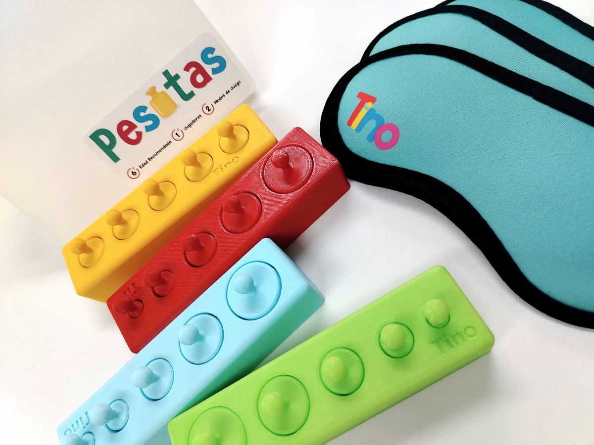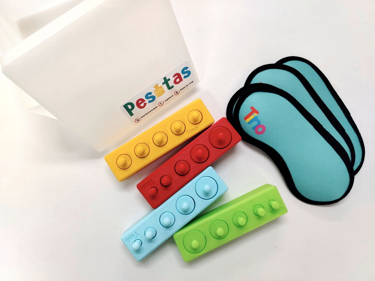 El diseño colorido y las piezas de fácil manejo hacen que "Pesitas" sea accesible para los más pequeños, mientras que el desafío de jugar a ciegas lo convierte en una actividad estimulante incluso para niños mayores y adultos. Es un juego ideal para desarrollar habilidades sensoriales y cognitivas de una manera lúdica y emocionante.