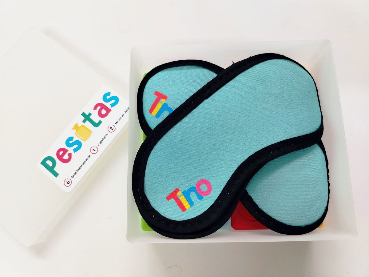 Modo Solitario: El jugador se coloca el antifaz "Tino" y debe ubicar correctamente las cinco pesitas en su tablero, guiándose únicamente por el tacto. El objetivo es completar el tablero en el menor tiempo posible.