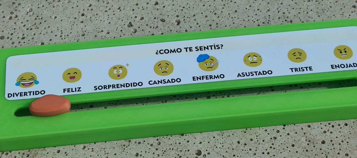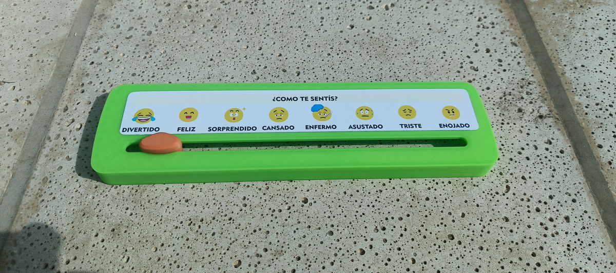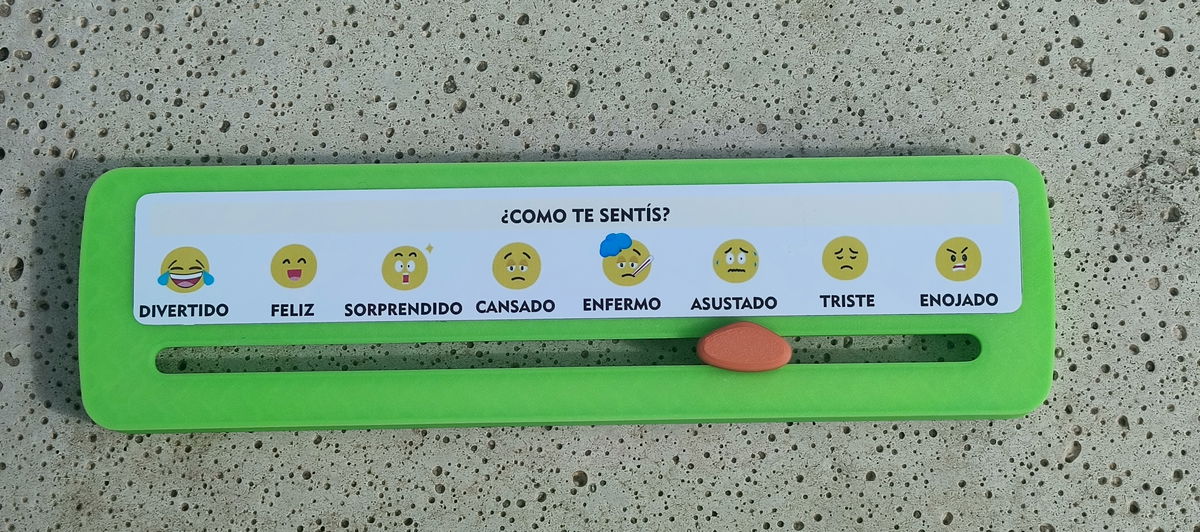 El control deslizante cuenta con ocho caras etiquetadas que muestran una variedad de emociones, además de un puntero fácil de mover. Los niños solo tienen que deslizar el puntero hacia la cara que coincide con su estado de ánimo, lo que los ayuda a comprenderse a sí mismos y a comunicar sus sentimientos a los demás.