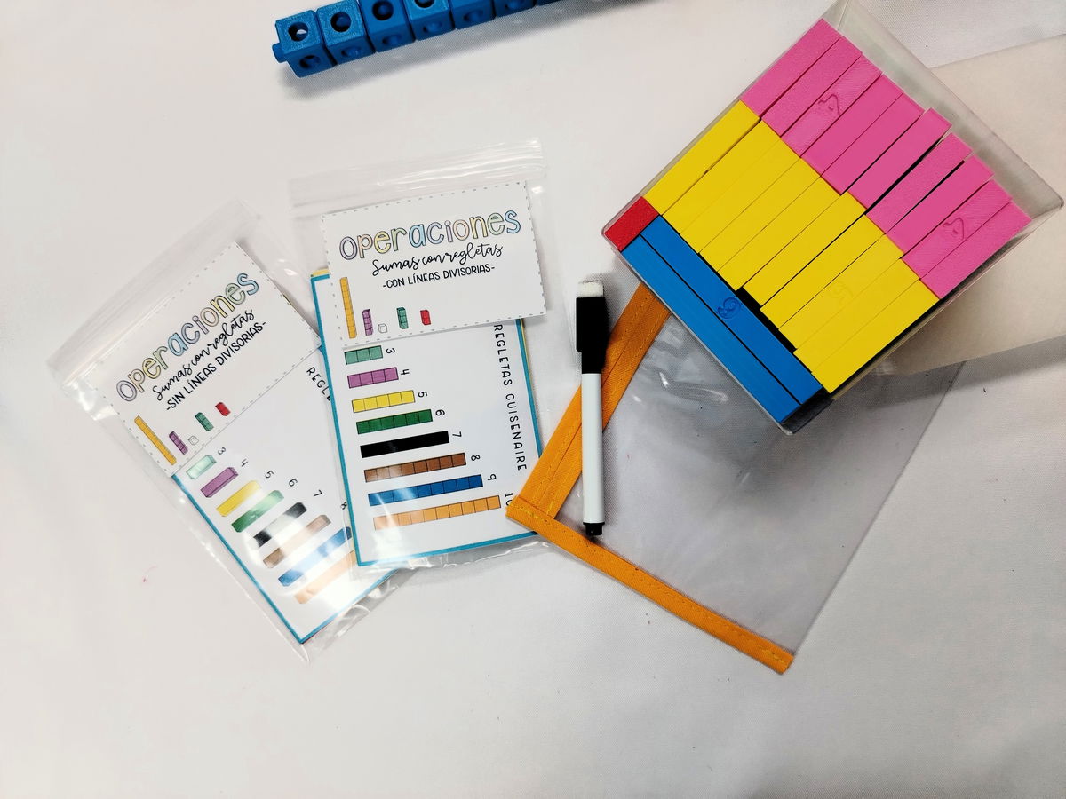 • Operaciones: suma con regletas con línea divisoria